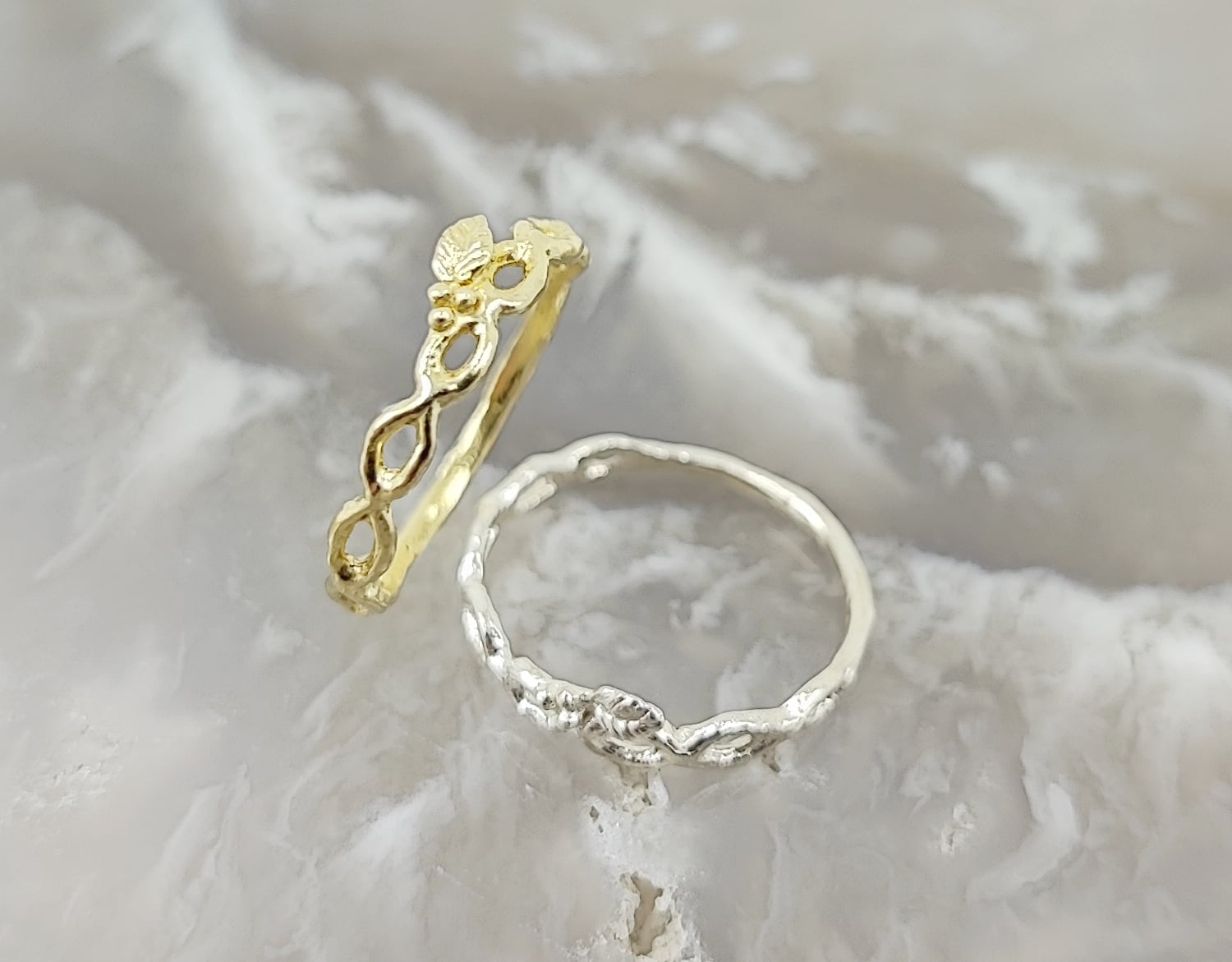 A simple ring adorned with a touch of the auspicious plant known as 'Senryou' in Japanese. The name 'Senryou' translates to 'Thousand Gold Coins' in English and carries a historical significance, referring to a valuable currency unit consisting of a thousand gold coins in Japan's past. This name, 'Senryou,' is associated with good fortune and prosperity, making it an ideal symbol for this elegant ring. Available in pinky ring size.